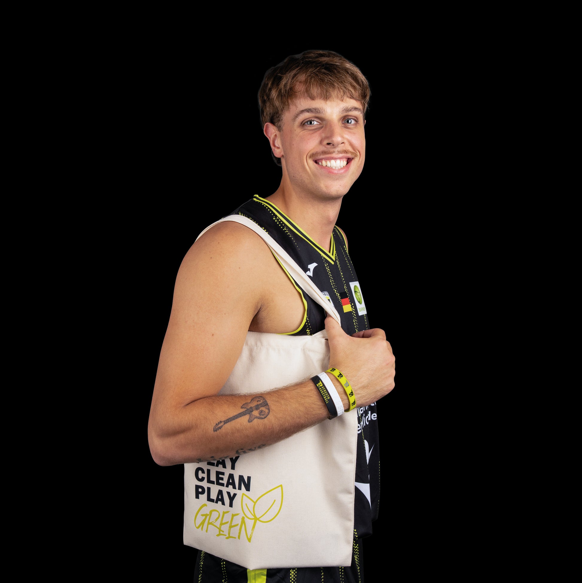 Play Clean – Play Green: Dieser Beutel steht für sportliches Fairplay und bewussten Lifestyle. Das moderne Frontmotiv setzt ein klares Zeichen, während das limegrüne B-Logo auf der Rückseite deine Verbindung zum BBC Bayreuth stilvoll unterstreicht. Praktisch, leicht und wiederverwendbar – ein Allrounder für alle, die Haltung zeigen.