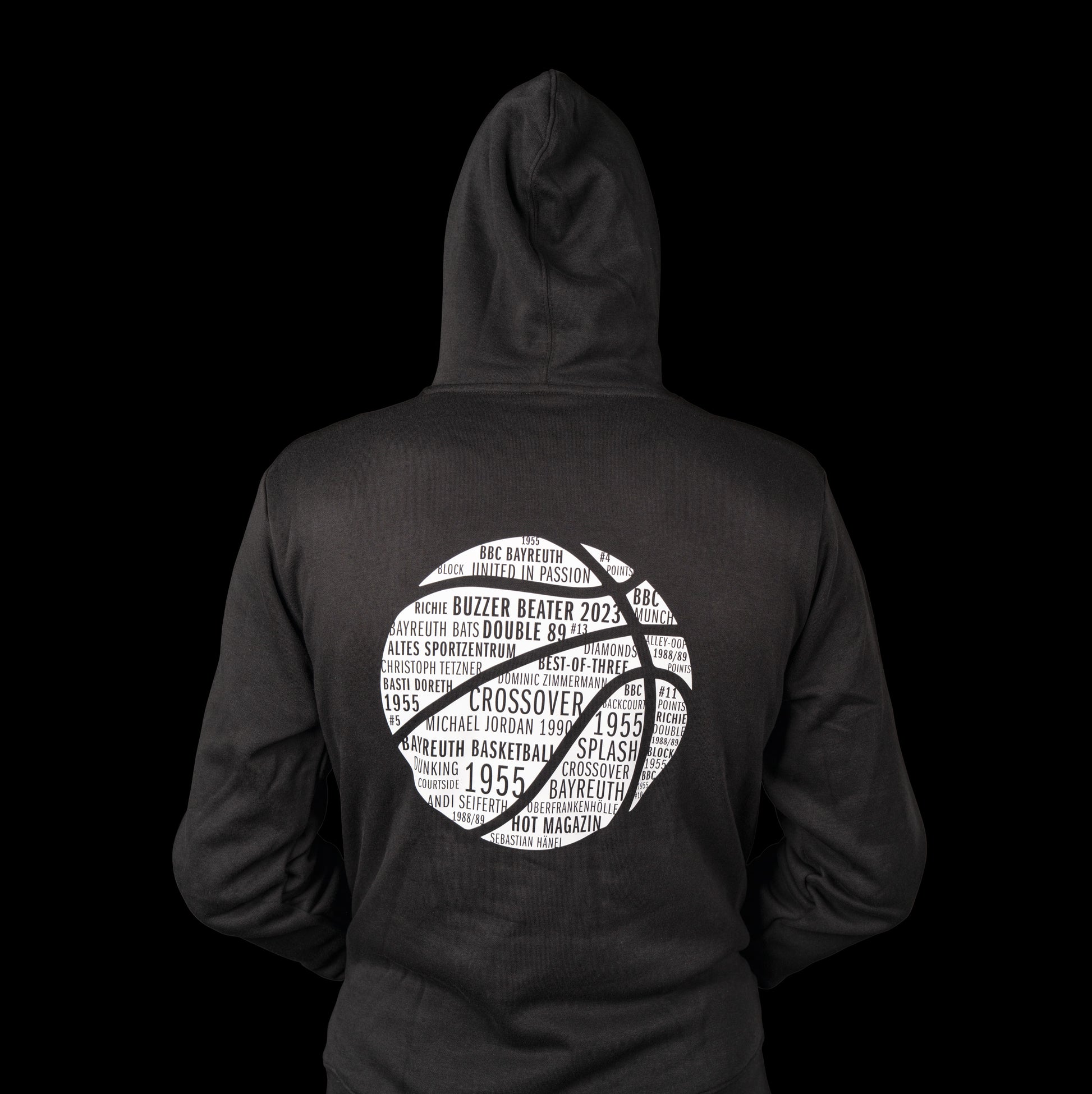 BBC Bayreuth Hoodie mit Wordcloud-Basketball – Geschichte zum Anziehen
